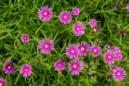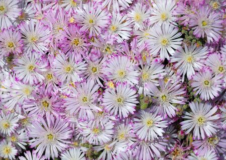 Top view of hardy iceplant, a species of sheepfigs (delosperma) in the garden in spring