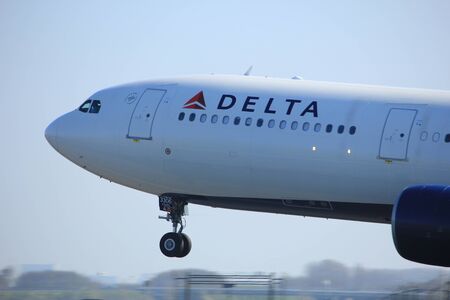 Amsterdam the Netherlands - April 2nd, 2017: N806NW Delta Air Lines Airbus A330 takeoff from Polderbaan runway, Amsterdam Airport Schiphol