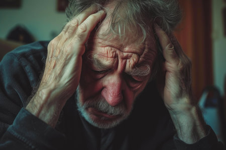 Portrait of sick senior man with headache
