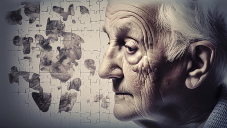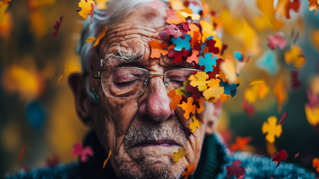 A powerful illustration of the concept of dementia, using puzzle pieces to symbolize cognitive decline, fostering awareness and understanding of mental health challenges.