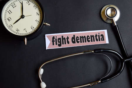 Fight Dementia on the paper with Healthcare Concept Inspiration. alarm clock, Black stethoscope.
