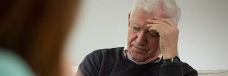 Old man at visit in psychiatrist's office