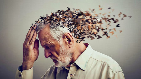 head of a senior man symbolize dementia, human brain diseases, and mental disorders. .generative AI