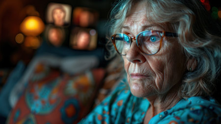 Soulful gaze of a wise elder, capturing the essence of time and reflection. Her eyes, framed by glasses, tell untold stories. A serene moment of quiet strength. Generated A.I.