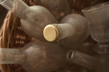 Old glass bottles, detail of some containers to save liquid
