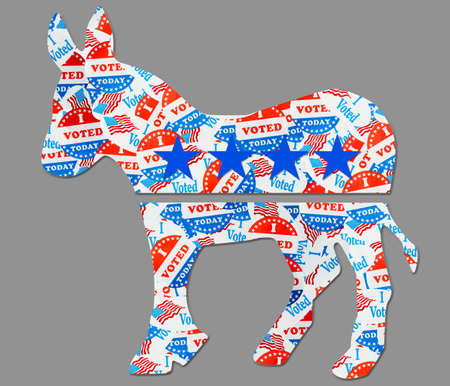 Many voting stickers given to US voters in Presidential election formed in the shape a donkey for Democrat party