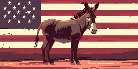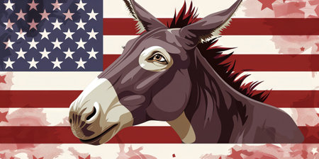 Donkey on the background of the American flag. Vector illustration.
