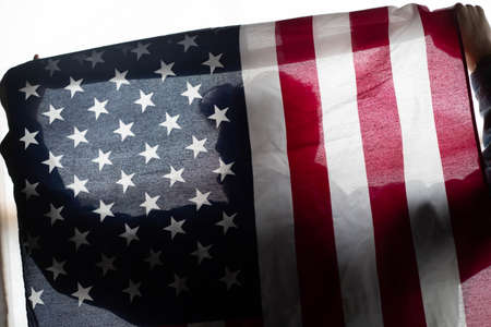 Close up of waving national usa american flag on black background with copy space for text. Concept of 4th of July or Memorial Day.