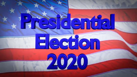 Presidential Election 2020 3D text front view with US flag on the background