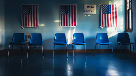 iconic symbols of American governance, from the striped flag to the eagle-adorned ballot box, evoking the spirit of democracy and the civic duty to vote.