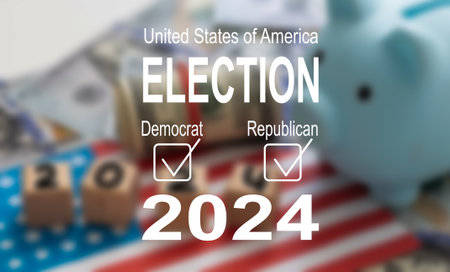 Presidential Election Concept - Presidential Election 2024 Written over Waving American Flag
