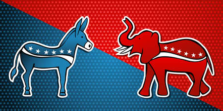 Donkey and elephant symbols of political parties in America. 2020 United States of America Presidential election. Design logo. Vector illustration. Isolated on white background.