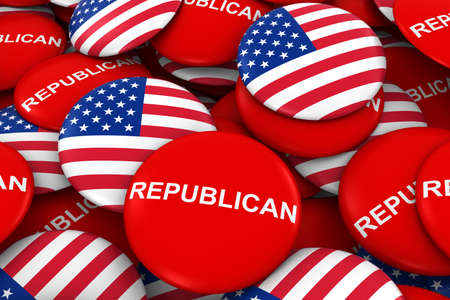 US Elections - Republican Party Campaign Pins and US Flag Buttons 3D Illustration