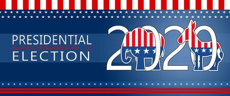 Presidential Election Long Banner Background for year 2020. Electoral symbols of both political parties. American Election campaign between democrats and republicans.
