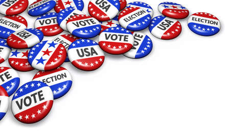 US presidential election in USA concept with sign and flag colors on campaign badges with copyspace 3D illustration.