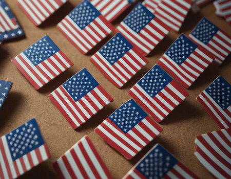 US flags on a white background flat lay