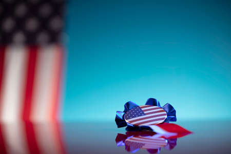 Independence Day theme. 4th of July. American Declaration of Independence. American flag. Red and blue.
