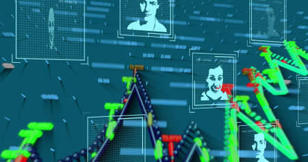 Image of connected people icons with floating financial graphs. digital interface global connections concept digitally generated image.