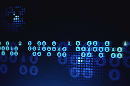 Modern social media interface over dark blue background. Concept of recruitment. 3d rendering toned image double exposure