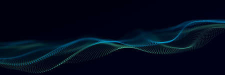 Abstract colorful digital particles wave with bokeh and light background, 3d render wave line dot background, line wave light glowing effect particular. Digital technology particular background.