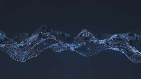 3D illustration of a sound wave. Sound waves with glowing particles.