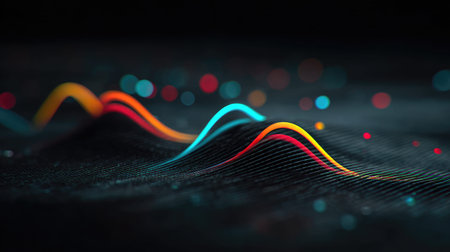 Vivid and colorful abstract wave pattern featuring glowing lines that create dynamic movement against a dark background, perfect for artistic and modern creative projects.