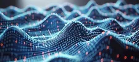 Digital blue wave technology connected geometric illustration background. Represents connection, cyberspace, digital world, future era.