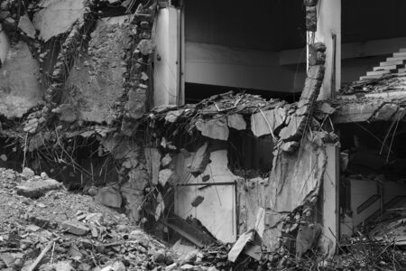 The demolition of building, destruction and ruins, destroyed house, toning photo