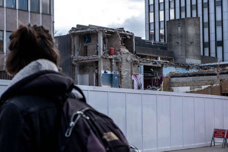 Kingston Upon Thames London UK, May 04 2021, Woman Walking Past A New Town Centre Development Construction Site