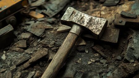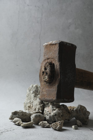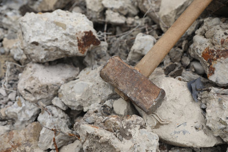 Concrete rubble debris with hammer