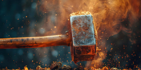 A powerful strike from a hammer symbolizes strength precision and endurance. Concept Strength, Precision, Endurance, Hammer Strike, Symbolism