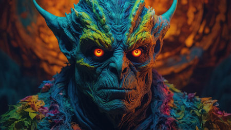 A close-up portrait of a bad demon with a cigar. Horror movie, nightmare. Halloween.