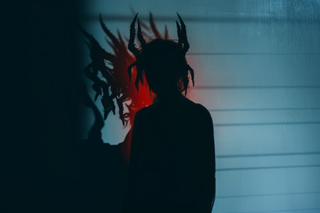 the demon game, set in a dark and ominous atmosphere, features a hauntingly lit background with eerie shadows, showcasing the intense battle between good and evil, perfect for fans of dark fantasy and horror gaming genres. ai generated