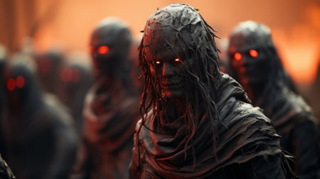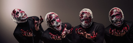 Bloodthirsty zombies in the cemetery. Horror movie. Halloween.