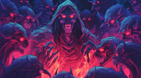 demon, tormenting the souls of the damned in hellfire, created with generative ai