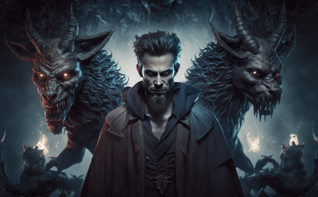 A warlock summoning a legion of demons to do their bidding . Fantasy concept, Illustration painting.