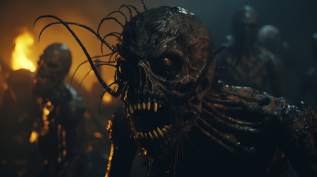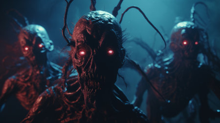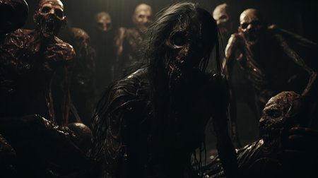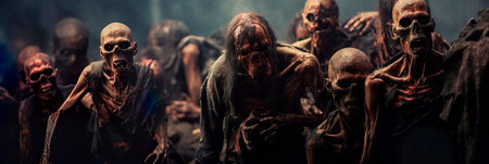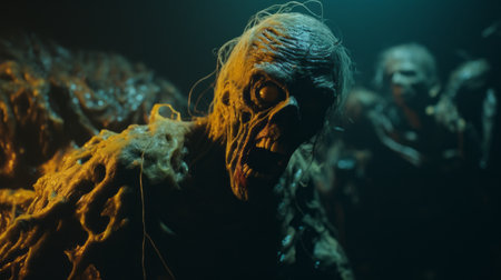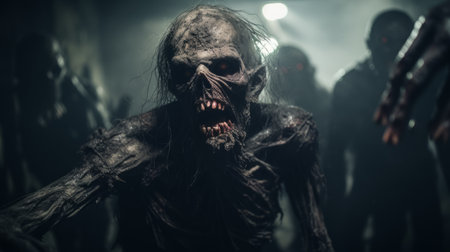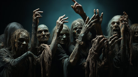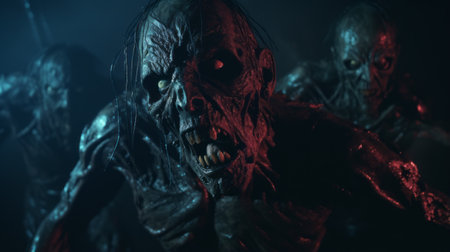 Horror scene with creepy zombies in the dark. Halloween concept.