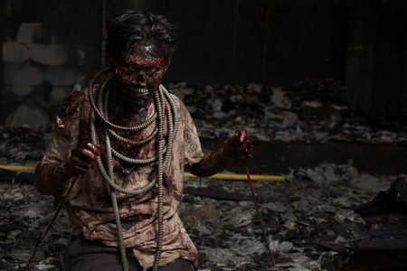 Spooky, creepy zombie in clothes, The scary zombie who gets burned,Man who burned the Horror of a in the pub.