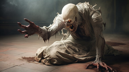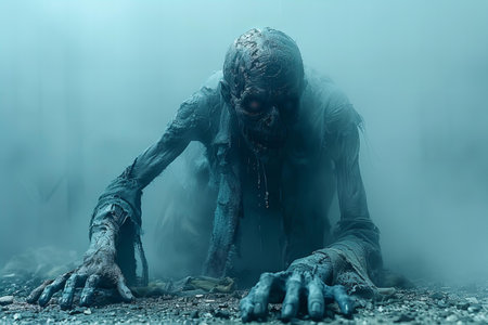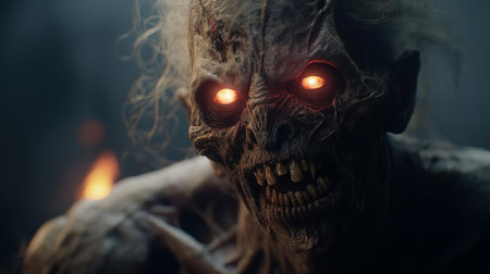 Creepy Zombie Creature Reaching Out with Glowing Eyes in a Spooky Atmosphere, Perfect for Halloween and Horror Themes AI Generative