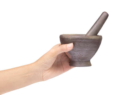stone mortar with handle ,selective focus,selective focus on subject selective earia.