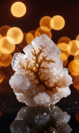 Macro image of crystal quartz on black background with bokeh.
