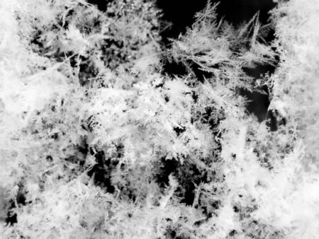 Snowflakes on a dark background, close-up macro photo