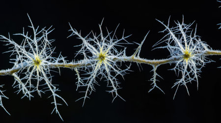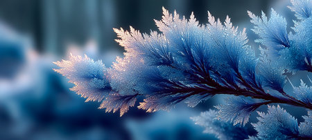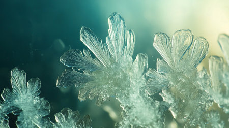 This stunning close-up image captures the intricate beauty of frost-covered ice crystals, showcasing delicate patterns that emerge in winter's chill.