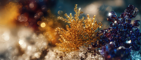 Natural lighting illuminates vibrant zygobranchiata in gold and jewel tones. A festive scene celebrating New Year