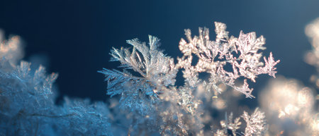 Delicate snowflakes shimmer with ethereal light creating a magical atmosphere for the holiday season. Winter beauty is captured in detail.
