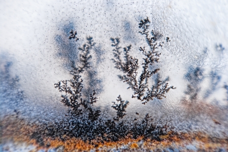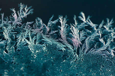 Macro of ice crystals on frozen window glass. Natural background.