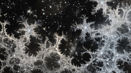 Explore a stunning abstract fractal design featuring intricate patterns and shimmering stars set against a dark cosmic backdrop, showcasing celestial beauty.
