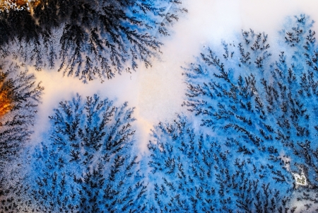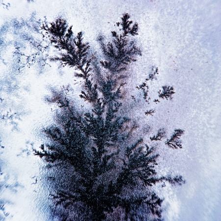 Close up photo of frost on window shows interesting pattern
