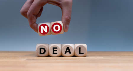 Claim is denied on Wooden Blocks on dark gray background with copyspace. The answer is No. Business financing sponsorship concept.