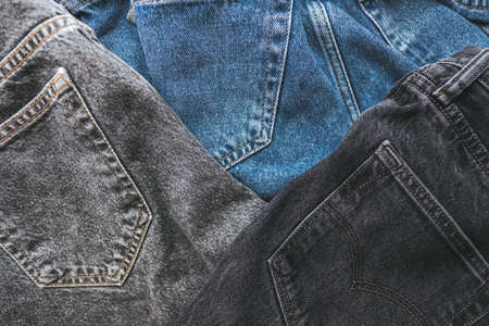 Jeans fashion background, different colours. Close up.High quality photo